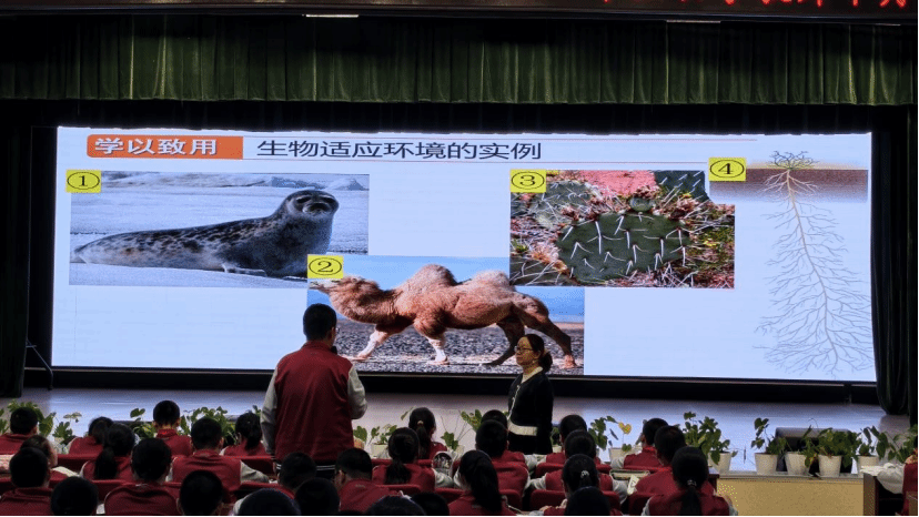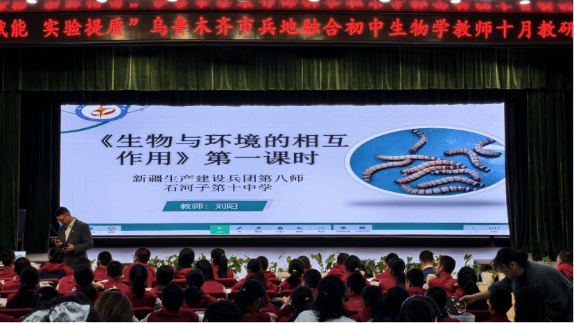 接下来是乌鲁木齐市第107中学的陈凯丽老师和八师石河子第十中学的刘阳老师带来的八年级上册第五单元第一章第一节《生物与环境的相互作用》同课异构课。陈凯丽老师这节课以“生物与环境的相互作用——普氏野马宣传手册设计”为主题,引导学生明确生态因素分为生物和非生物因素,通过资料分析、“探究光照对黄粉虫分布影响”的实验,理解光、温度等非生物因素和生物因素对生物生活与分布的影响,同时认识到生物既适应环境也影响环境,培养了生命观念、科学思维等生物学核心素养。而刘阳老师这节课围绕生物与环境的关系展开,先明确环境中影响生物的因素分为生物因素和非生物因素。再通过分析小麦生长的环境条件、以大麦虫为对象探究“光对大麦虫分布的影响” 等活动,说明生物与环境相互影响。同时引导学生关注生物与环境的关系,形成环保意识、自觉保护环境。