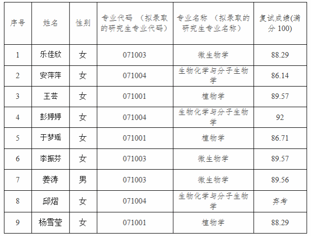 公示时间:2025年9月30日至10月5日。公示期间如对上述结果有异议,请于10月5日前与新疆师范大学生命科学学院研究生办公室联系。