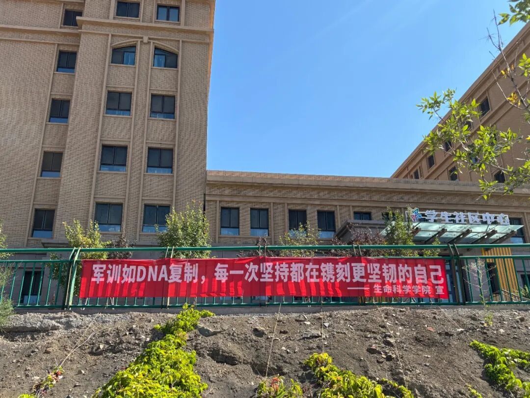汗水不仅浸透了年轻的躯体,更化作滋养成长的养分,浇灌着一颗颗愈发坚韧的心。这场关于坚持、团结与热血的军训课,是生科新生们的青春必修课,亦是他们探索“成长”的实验地。正如学院大本营旁的横幅所言:“以青春为培养基,用汗水浇灌出生科人的硬核成长”。
